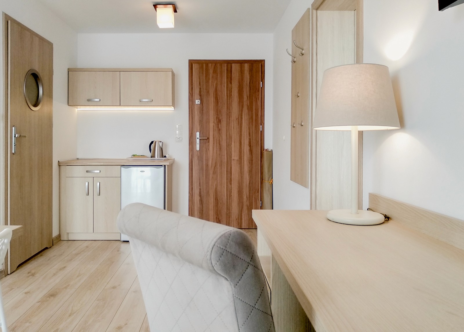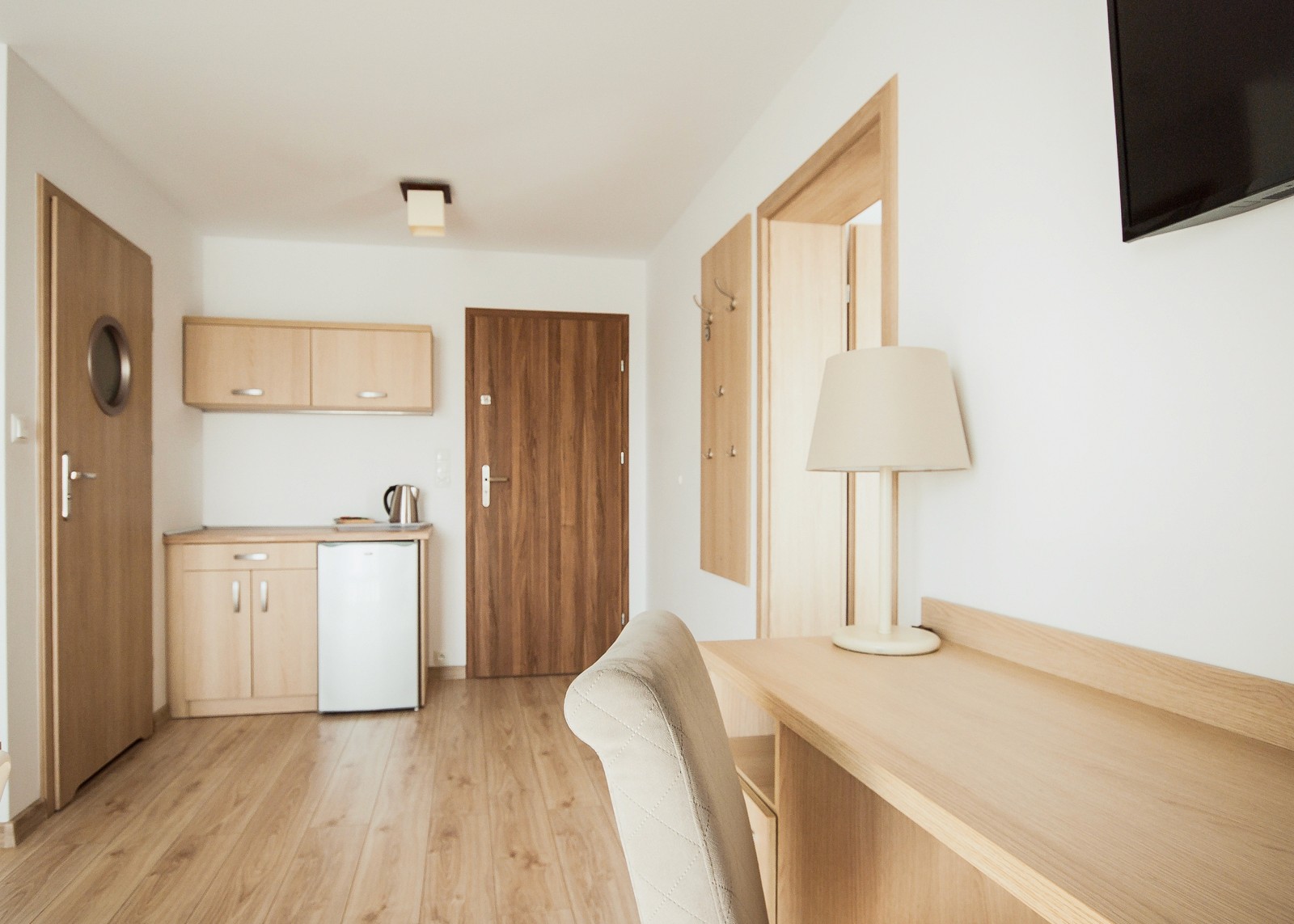 Przytulna przestrzeń do relaksu w komfortowych warunkach. Pokój wyposażony w aneks kuchenny