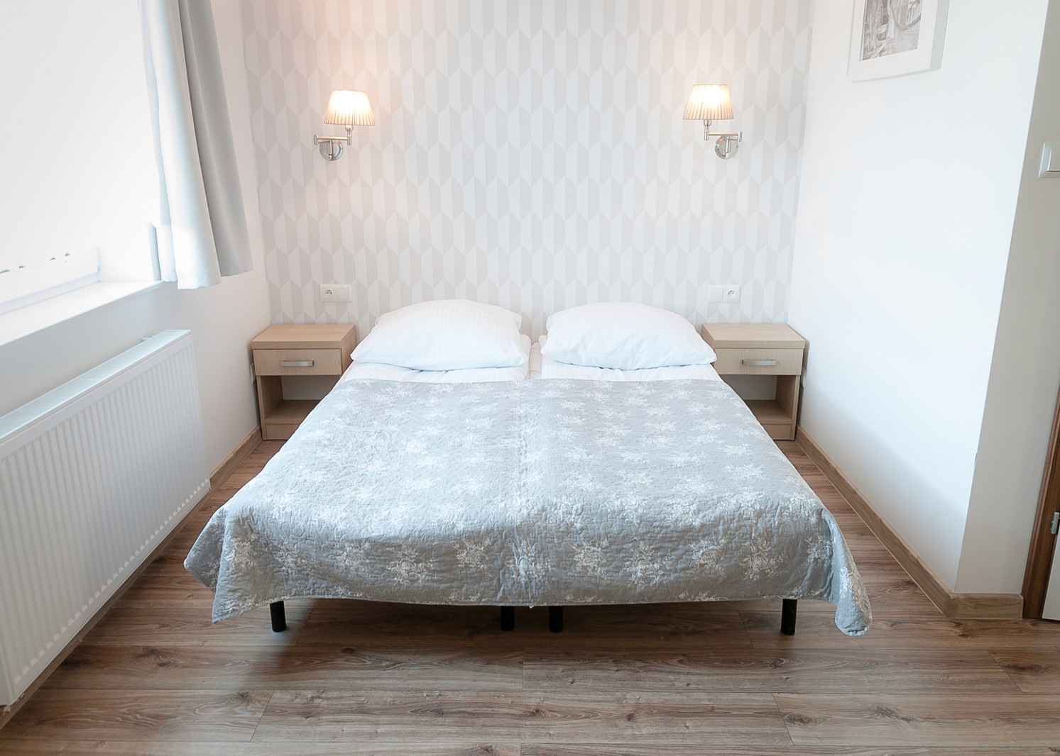 Dwa pojedyńcze łóżka z opcją złączenia w jedno. Wysokogatunkowa pościel.