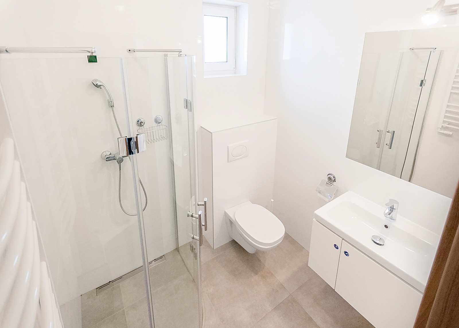 Prysznic i funkcjonalne wyposażenie.